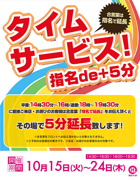 に直接ご来店・お遊びのお客様は合言葉「指名で延長」をお伝え頂くと、その場で「5分延長」致します!