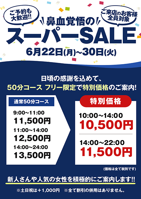 日頃の感謝を込めて、50分コース フリー限定で特別価格のご案内!