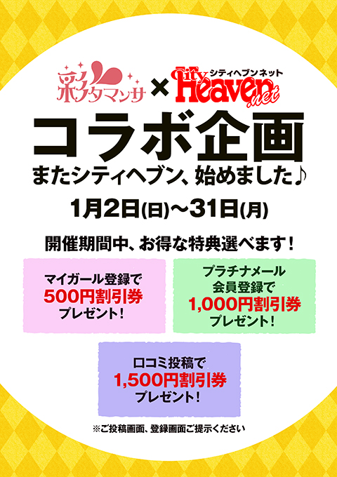 ・プラチナメール会員登録で1,000円割引券プレゼント!