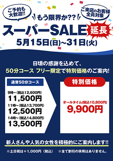 日頃の感謝を込めて、50分コースフリー限定で特別価格のご案内!