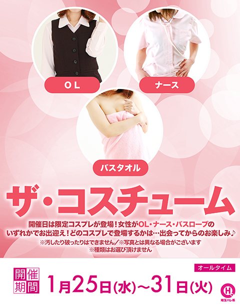 開催日は限定コスプレが登場!女性がOL・ナース・バスローブのいずれかでお出迎え!