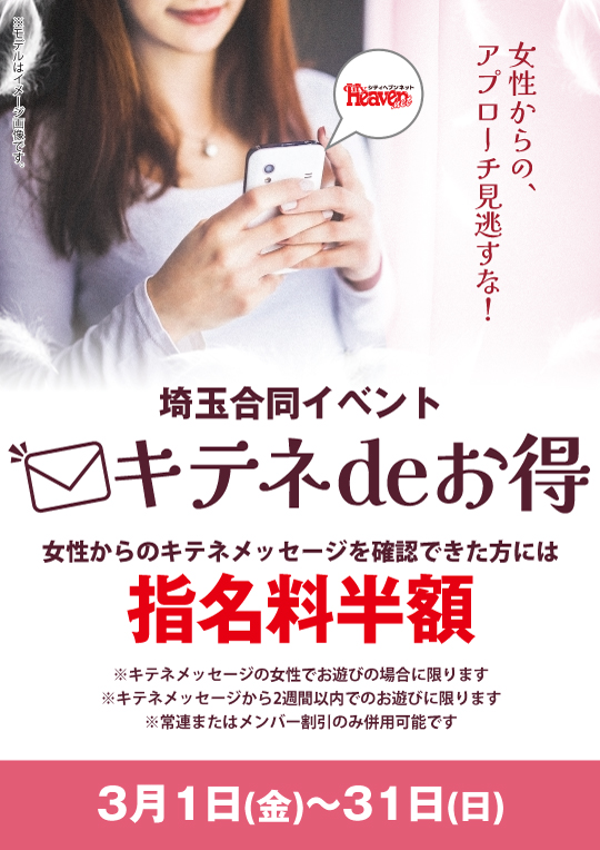 女性からのキテネメッセージを確認できた方には 「指名料半額」にてご案内!
