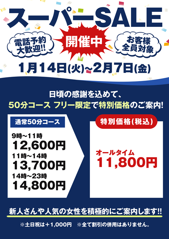 日頃の感謝を込めて、50分コース フリー限定で特別価格のご案内!