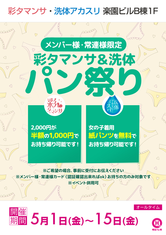 メンバー様・常連様限定/彩タマンサ&洗体パン祭り